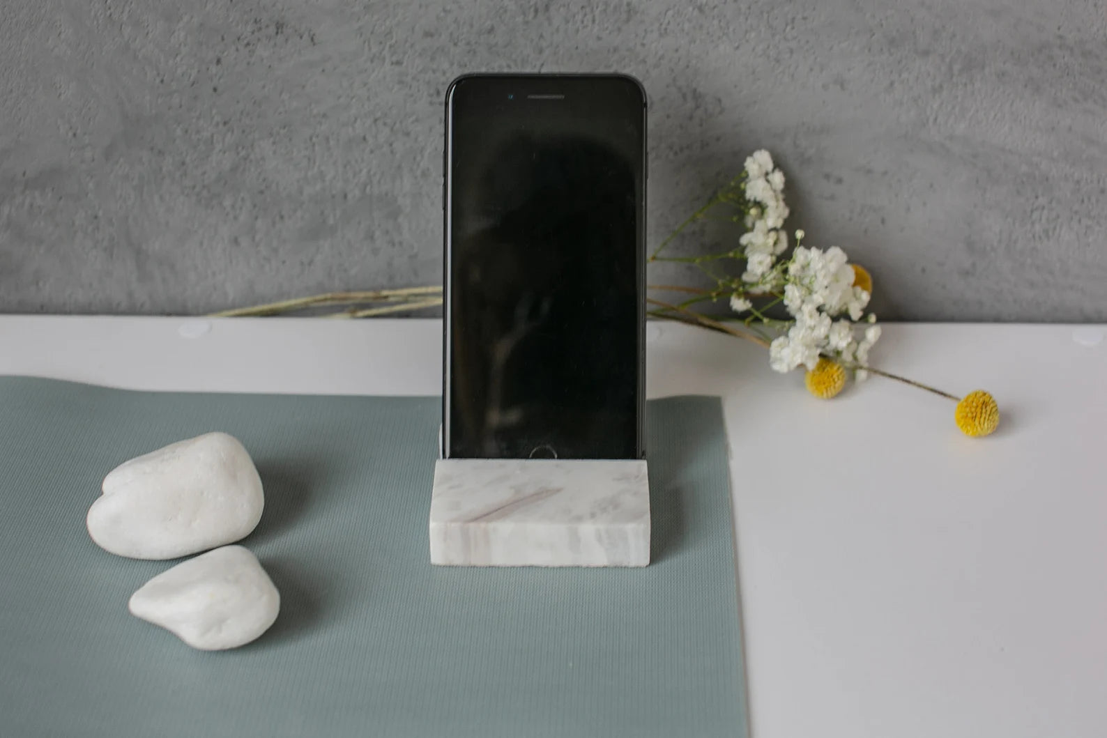 This wonderful marble Iphone and Ipadstand will be perfect accessory for any desk. Made of natural marble and fits for many many brands and sizes of phone. This marble phone holder will help you to watch video or do coocking.
